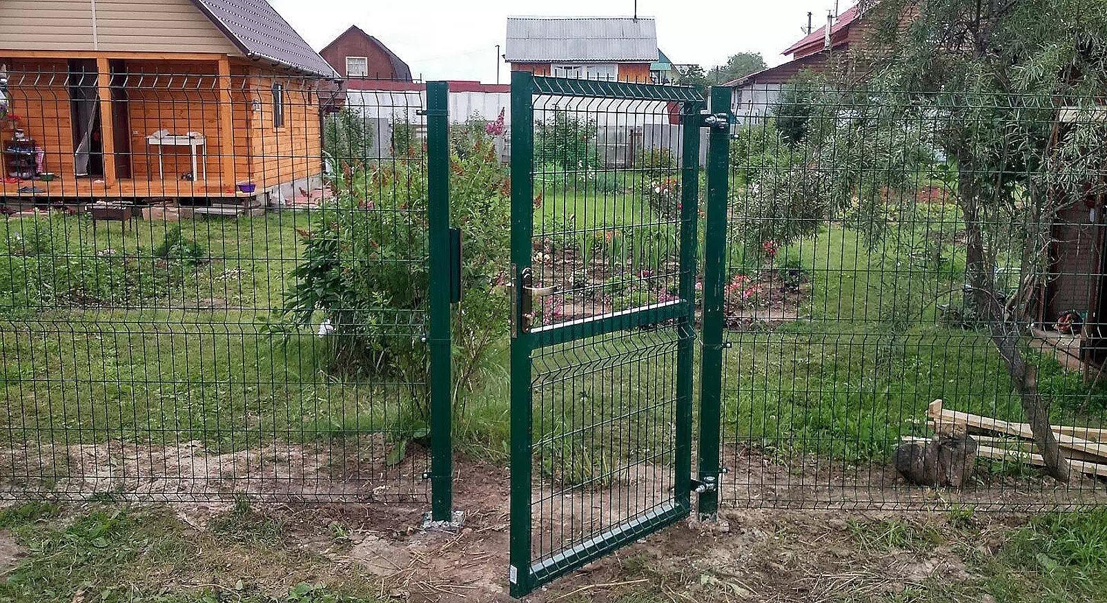 Калитка из профиля 40х40мм., потому что у сетчатых панелей нет никаких ветровых нагрузок и сама по себе 3д сетка не тяжелая. Из-за чего, укреплять ворота и калитки сверх норм не нужно, это просто необоснованное удорожание.
